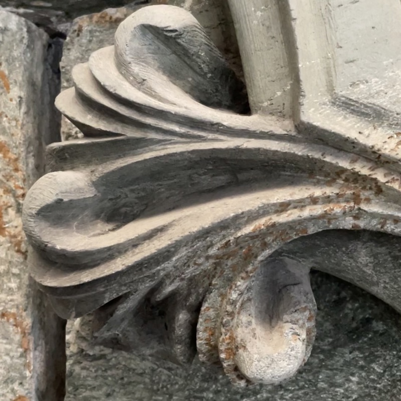 Pynteelementer som stikker ut er så sterkt forvitret at de ikke kan repareres. Det blir laget kopier gjennom vintermånedene, når det ikke er mulig å jobbe med kalkmørtel.