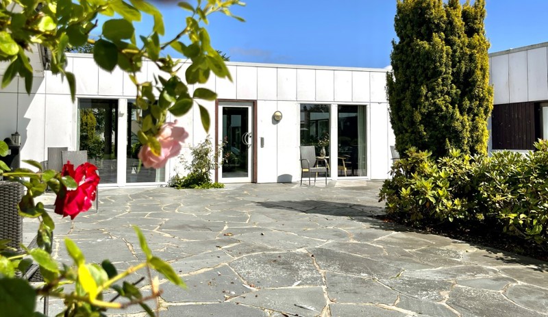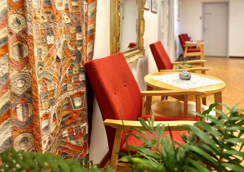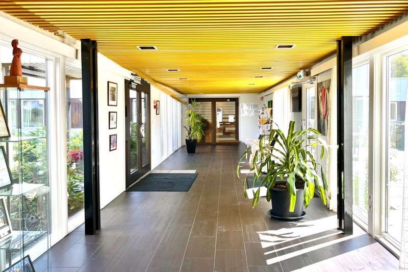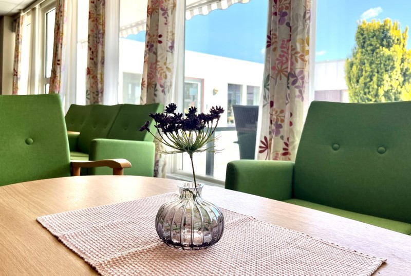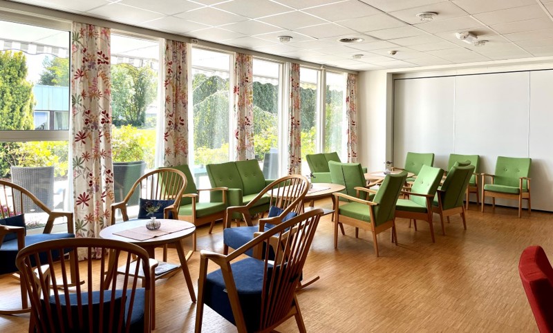 Blidensol nybygg har 16 nye plasser for personer med demens, med spennende utforming, egen sansehage og flott utsikt til sjøen. En enhet her gir et spesialtilbud for yngre personer med demens, mens den andre gir et forsterket, skjermet tilbud.