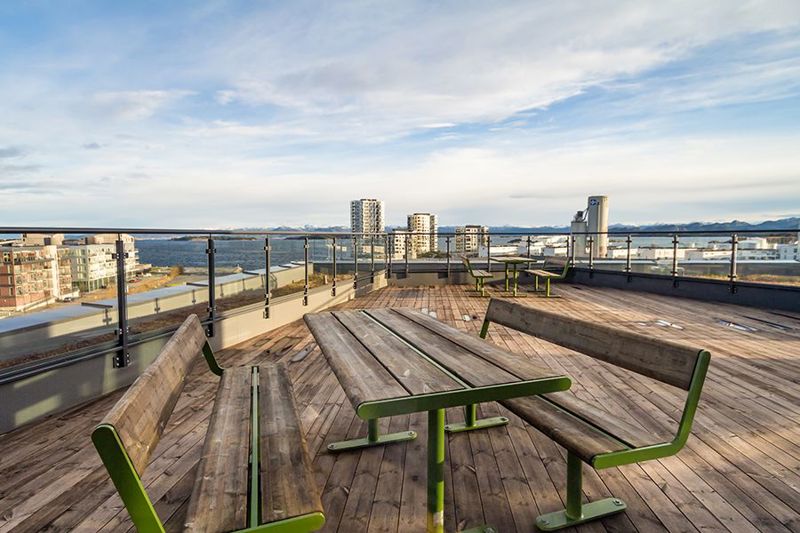Lervig sykehjem har garasjeanlegg i 1. etasje som kan benyttes av besøkende og ansatte.