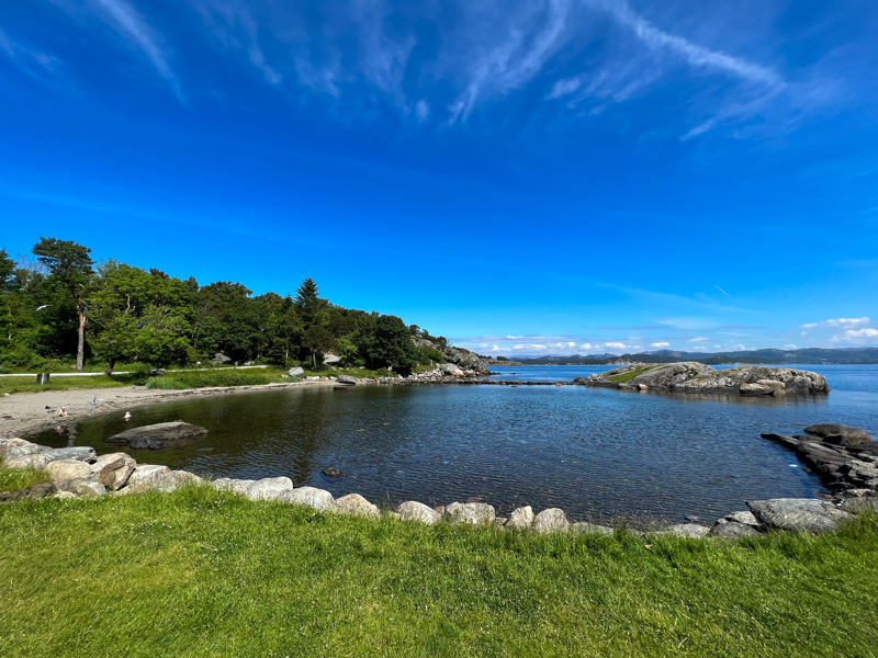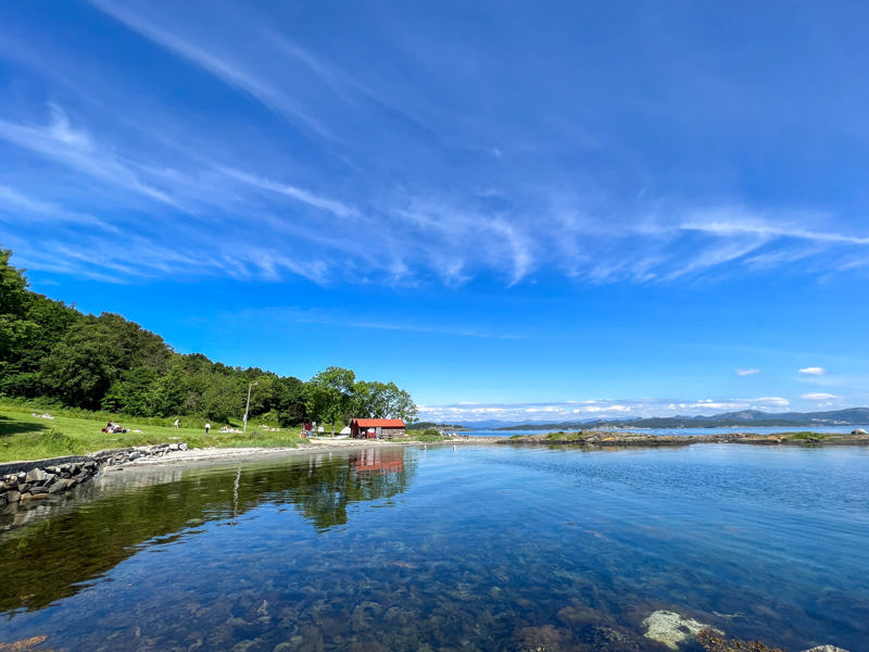 Sjøbadet i Strømvig er fylt med sjøvann, så temperaturen er vanligvis noen grader varmere her enn i sjøen.