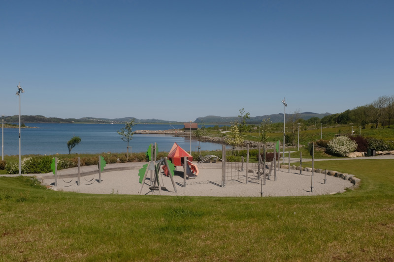 Lekeplassen på Hundvåg ligger tett på sjøen i Lunde bydelspark, og har hentet inspirasjon fra livet langs Stavanger kystlinje. Her kan du leke i «krabben» og klatre i «teinene»!