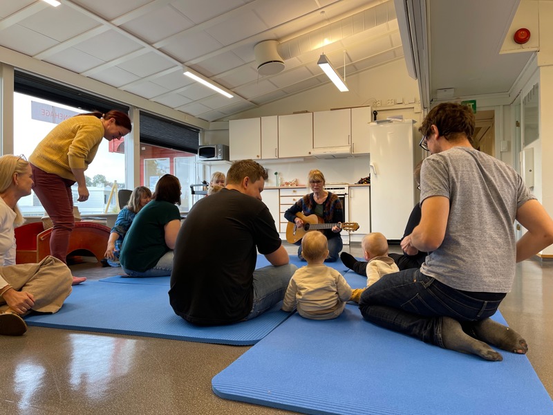 I en åpen barnehage kan barn komme sammen med foreldre eller andre omsorgspersoner.