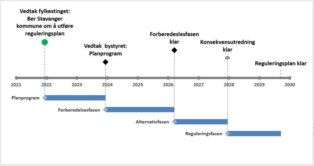 - Dersom fylkeskommunen bevilger finansiering av det videre planarbeidet, kan kommunen ha klar en reguleringsplan tidligst i 2029.