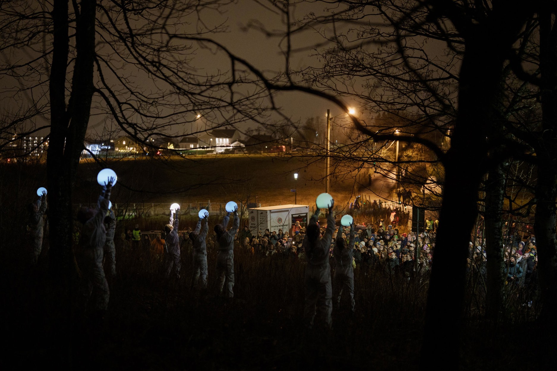 Med den stedspesifikke koreografien og en intrikat bruk av lysdesign og musikk, ble Ullandhaugtårnet og omgivelsene i Sørmarka forvandlet til en scene av dimensjoner.